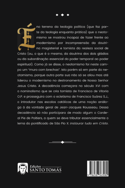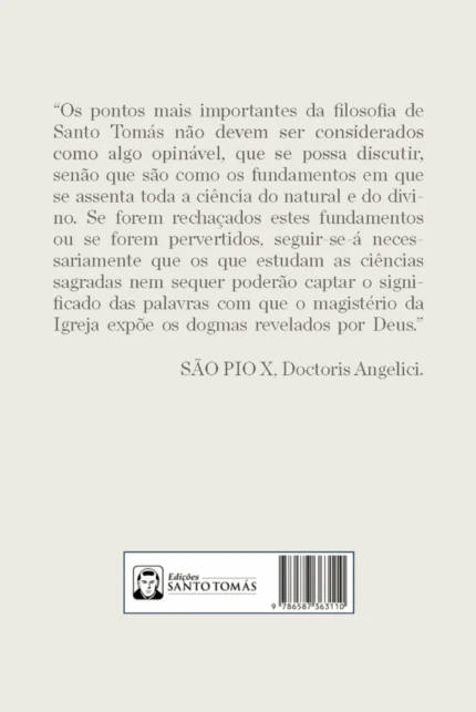 Em tempos tão caóticos, onde a Verdade sempiterna é colocada em suspensão pela deletéria influência do subjetivismo e do agnosticismo, este livro se torna um bálsamo, quando munindo-se dos ensinamentos de Santo Tomás de Aquino defende as causas e efeitos da Verdade perante as filosofias modernistas.